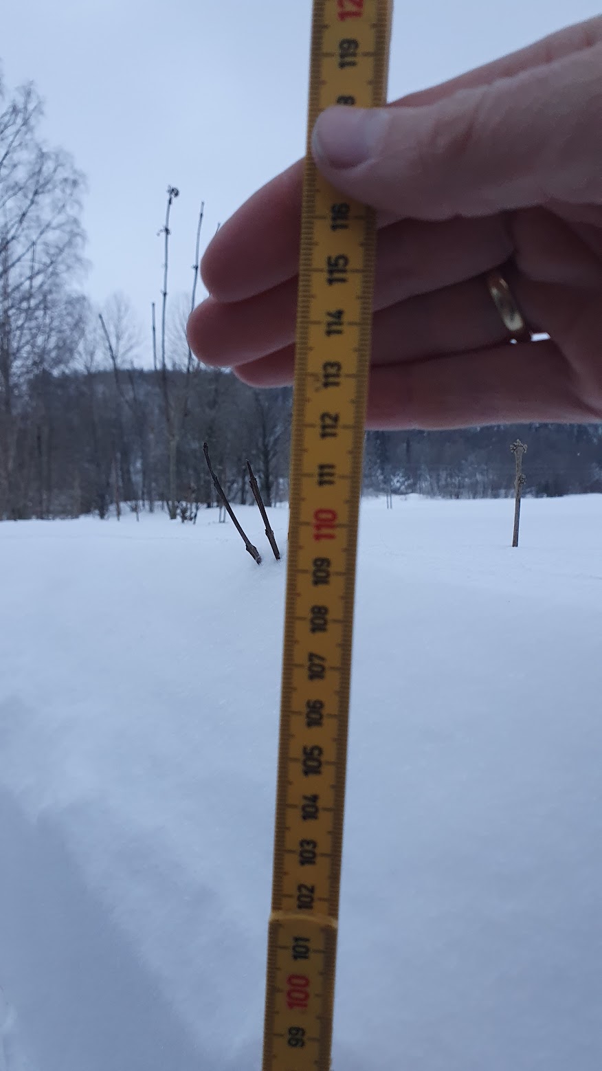 Fra og med november fikk vi høyere og høyere skuldre. Familien diskuterte vær og snø utrolig mye. Et av tiltakene mine (i tillegg til medisiner) for å hindre ny prematur fødsel, var å oppføre meg som om jeg var på «bedrest», jeg holdt meg mest mulig i ro, og turde knapt bevege meg i tredje trimester. Så da mann og barn kjørte fast bilen i veien vår før jul, ville han jo ikke ringe meg og be om hjelp. Og barna ville ikke gås fra alene i mørket i bilen. Så han og eldstemann kjempet seg fram, med hardpakket snø til livet på 7-åringen, og 4-åringen ble lagt sovende på akebrett og forsøkt trukket frem. Selvsagt våknet stakkaren da tråden røk og han ble full av snø. Gråtende kom de seg til slutt hjem, mens de forsverget den Dumme Snøstormen! Etter dette har «redningsakebrett» og vinteryttertøy vært fast invetar i bilen vår..