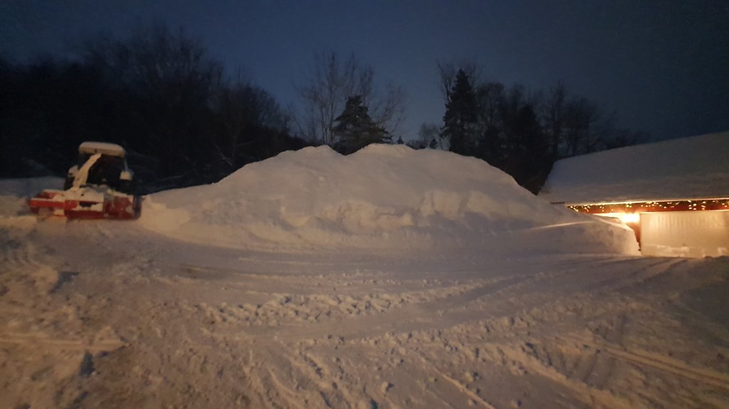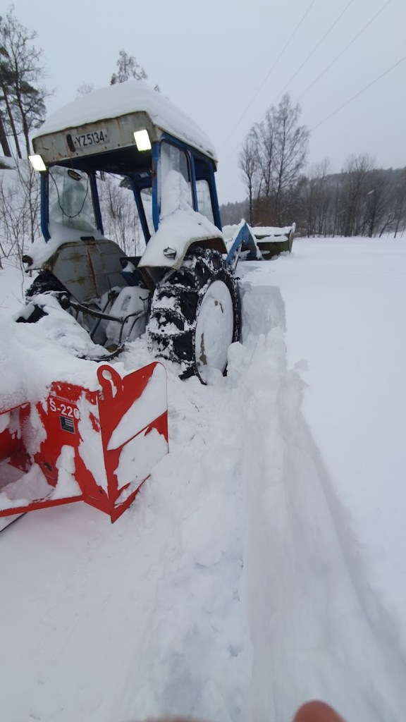 Et av tiltakene mine for å trygge vinterens situasjon var å inngå en ny brøyteavtale med en aktør som var nærmere oss. Han syntes nok han hadde solgt seg for billig, for etter å ha vært her to ganger (og harvet opp veien vår skikkelig stygt), ghostet han oss og dukket bare ikke opp mer. Men mannen har heltet med den gamle blå traktoren vår, og holdt veien åpen nesten alle dager. For selvsagt ble dette den hardeste vinteren i manns minne. Som kystvestfolding ante jeg ikke hvor heftige vintre det var i Våle før jeg flyttet hit! I fjor endte vi med å prøve å brøyte fylkesveien selv, for å få barna på skole og barnehage. Da oppdaget vi at måten man kommer seg fram på landet vinterstid, er at far kjører foran med traktor og mor og barna etter i 4xSuven. Jeg ser for meg at det burde finnes SoMe for å avtale slike lokale kolonnekjøringsgrupper? Men til tross for hvor latterlig mye snø vi syntes det var i fjor, kom det mer i år..