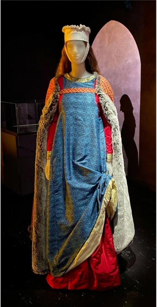 I 2021 ble jeg forespurt av Slottsfjellsmuseet om jeg ville lage en utstillingsdrakt til den nye middelalderutstillingen deres Høyt hevet. De hadde noen små fragmenter fra det som sies å være graven til Prinsesse Kristina. Dette skulle være utgangspunkt for en drakt for Kong Håkon Håkonsons datter, søster til Magnus Lagabøte. Hun er ofte framstilt som en tragisk kvinneskikkelse. Men da jeg satte meg inn i sagateksten om henne, oppdaget jeg at Kristin Håkonsdatter trolig var en aktiv politisk deltager. Jeg bestemte meg for at drakten måtte reflektere en kvinne med agens. Jeg analyserte tekstilfragmentene, og sydde en drakt med et snitt hentet fra nordeuropeisk middelalder, men utført i tekstiler skikket en prinsesse ved det rike hoffet til Alfonse den vise i Castilla y Leon. Prosessen og mine betraktninger rundt Kristina og hennes rolle kan du blant annet lese mer om her: Hvordan rekonstruere drakten til en middelalderprinsesse? Kristina av Tunsberg – myte, makt og drakt I forbindelse med dette prosjektet holdt jeg også flere foredrag, skrev en artikkel i utstillingskatalogen og en aviskronikk.